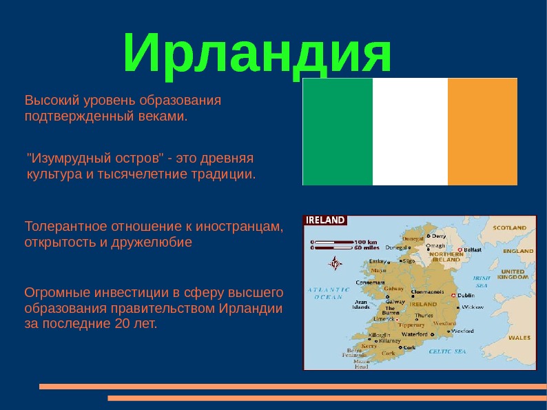 Ирландия Высокий уровень образования подтвержденный веками. Огромные инвестиции
