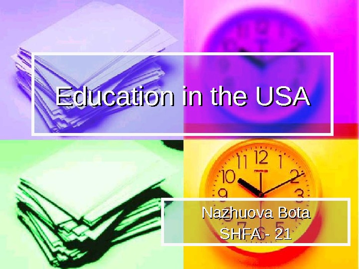Education in the USA Nazhuova Bota SHFA —