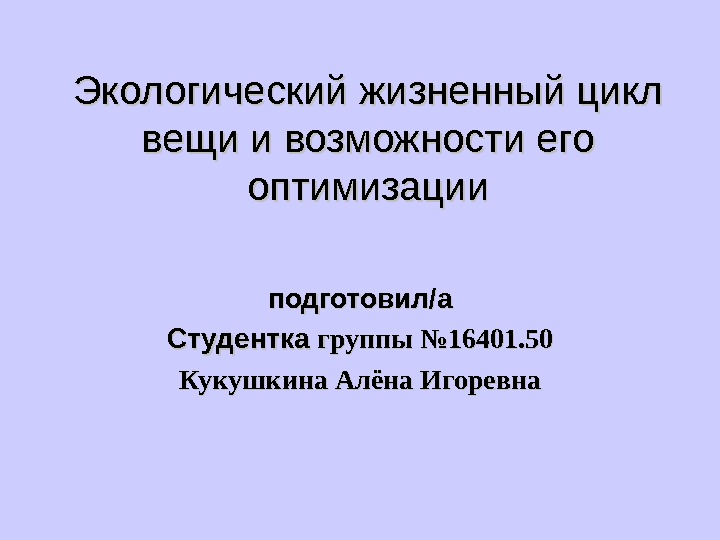 Экологический жизненный цикл вещи и возможности его оптимизации