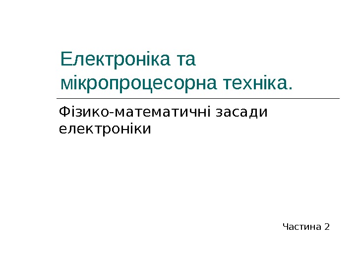 Електроніка та мікропроцесорна техніка. Фізико-математичні засади електроніки
