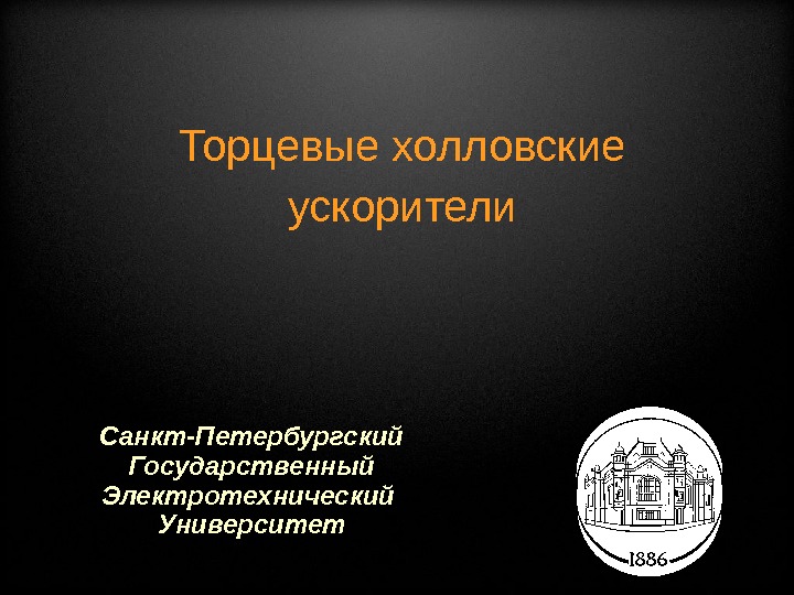 Торцевые холловские ускорители Санкт-Петербургский Государственный Электротехнический Университет