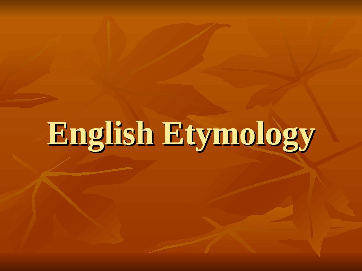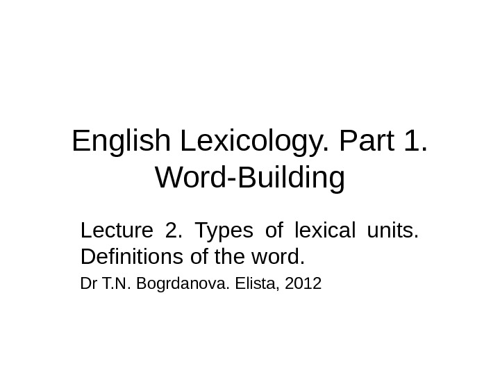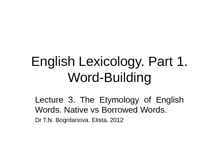 English Lexicology. Part 1. Word-Building Lecture 1. The