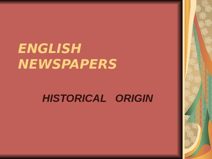ENGLISH NEWSPAPERS HISTORICAL ORIGIN TNE CAUSE