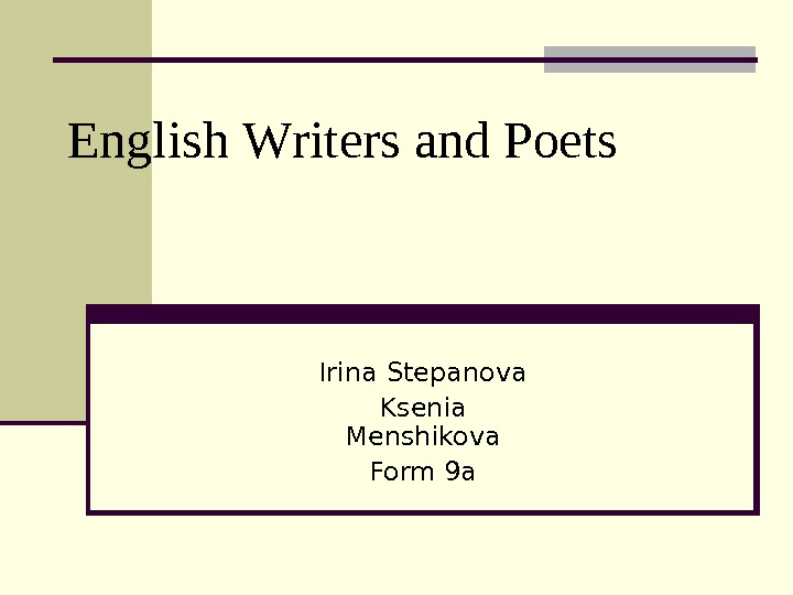 English W riters and P oets Irina Stepanova