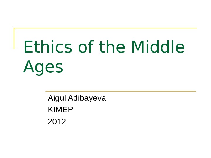 Ethics of the Middle Ages Aigul Adibayeva KIMEP