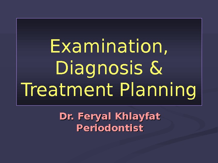Examination, Diagnosis & Treatment Planning Dr. Feryal