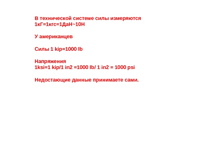 В технической системе силы измеряются 1 к. Г=1