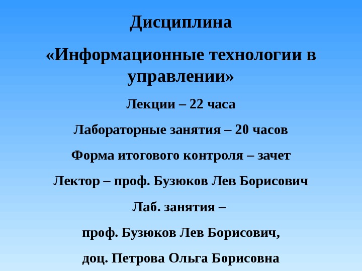 Дисциплина «Информационные технологии в управлении» Лекции –