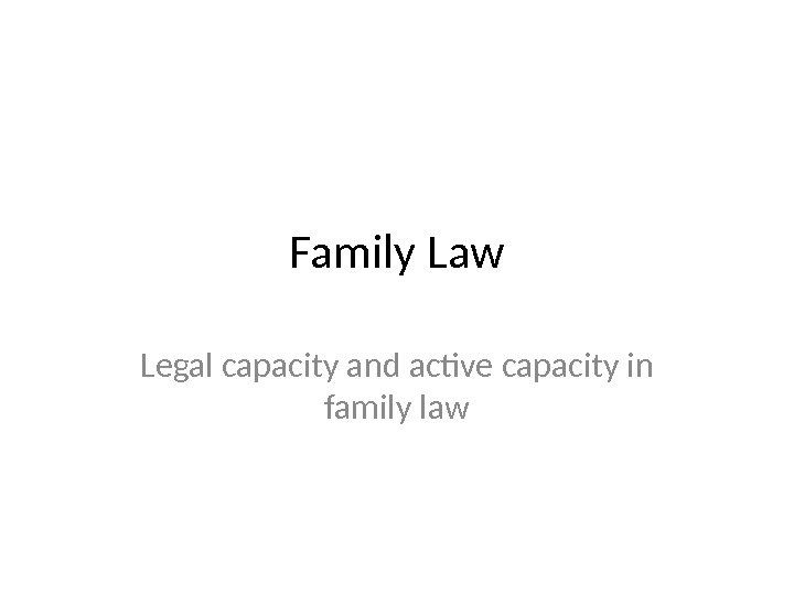 Family Law Legal capacity and active capacity in