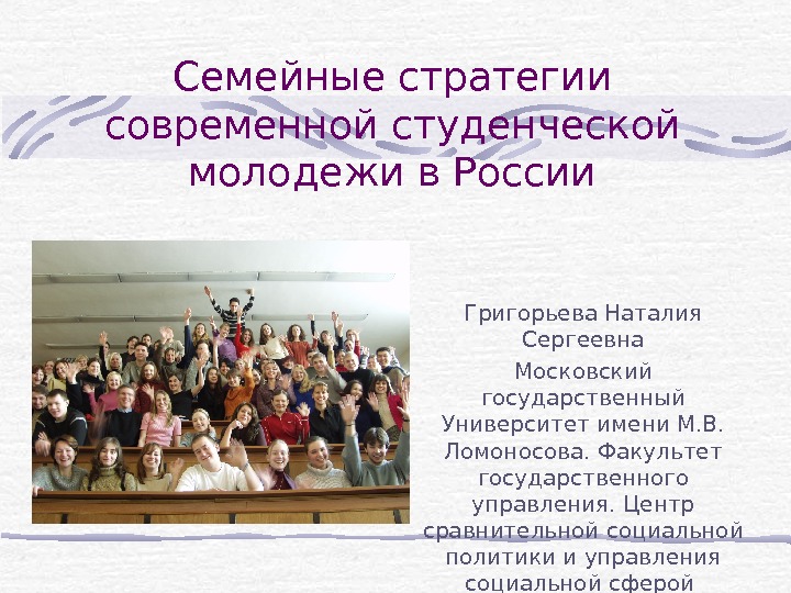 Семейные стратегии современной студенческой молодежи в России Григорьева