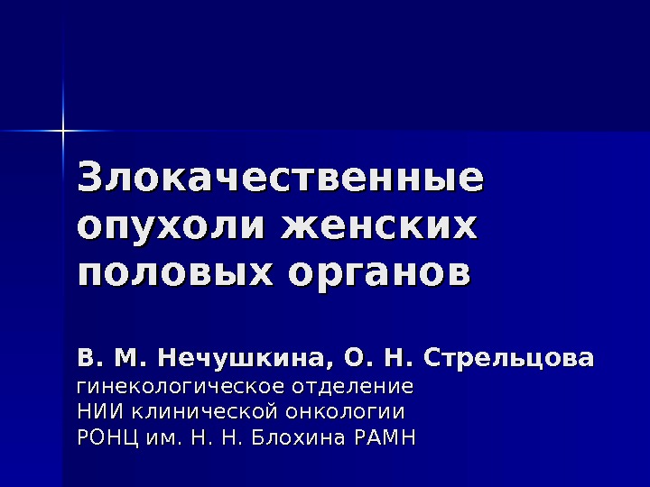Злокачественные опухоли женских половых органов В. М. Нечушкина,