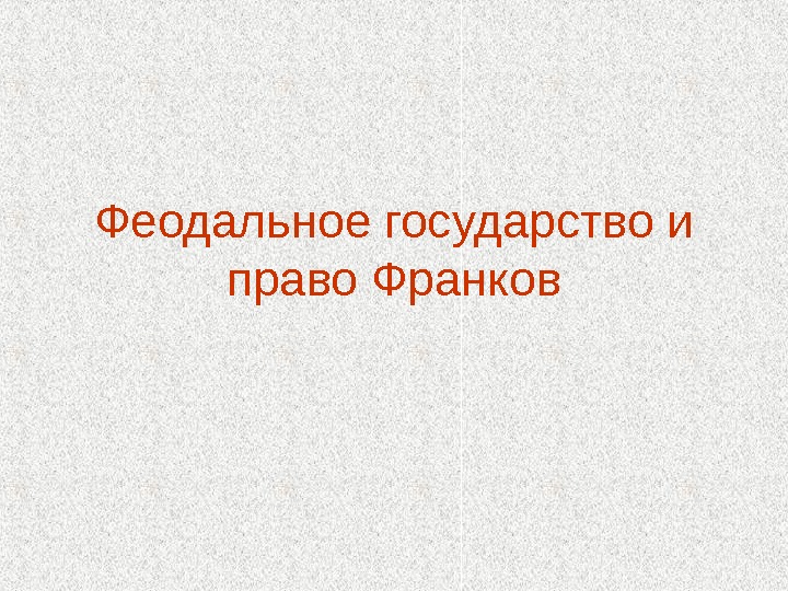 Феодальное государство и право Франков План лекции