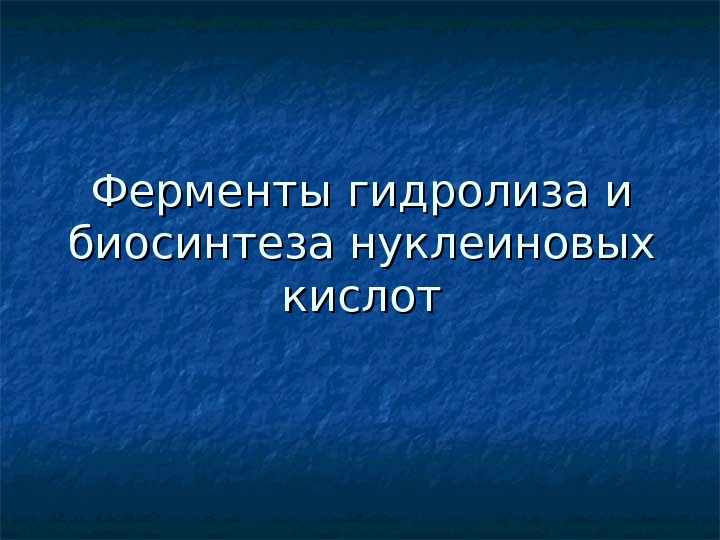 Ферменты гидролиза и биосинтеза нуклеиновых кислот Международная