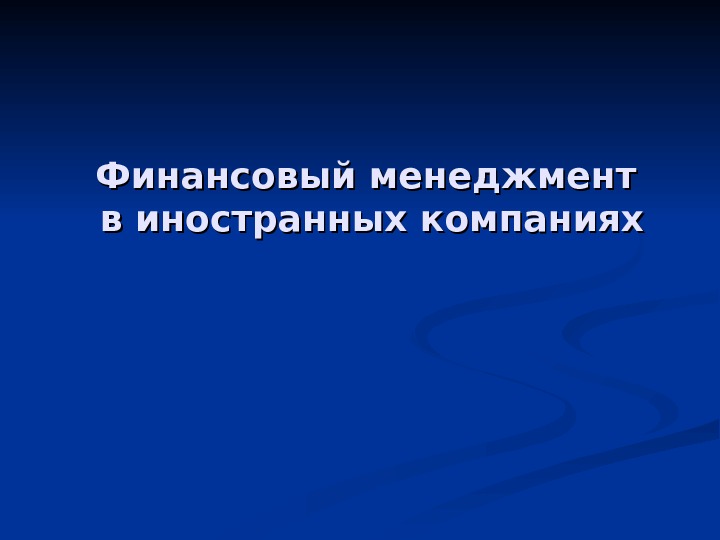 Финансовый менеджмент в иностранных компаниях Финансовый менеджмент