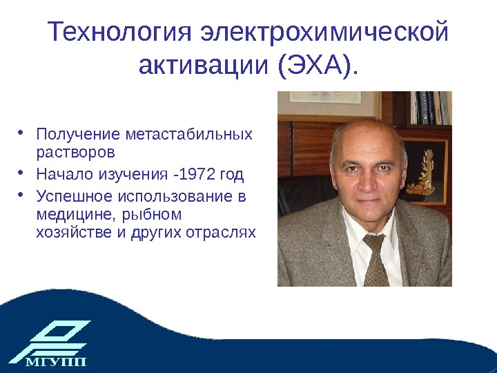 Технология электрохимической активации (ЭХА). • Получение метастабильных