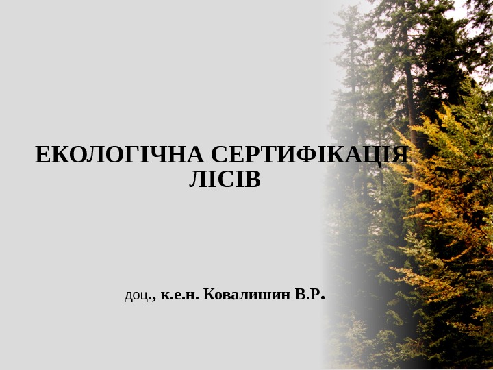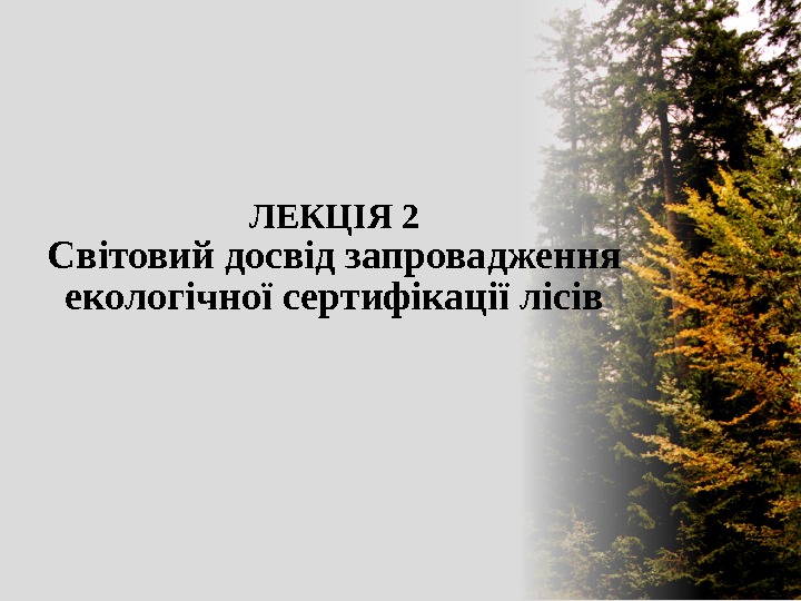 ЛЕКЦІЯ 2 Світовий досвід запровадження екологічної сертифікації лісів
