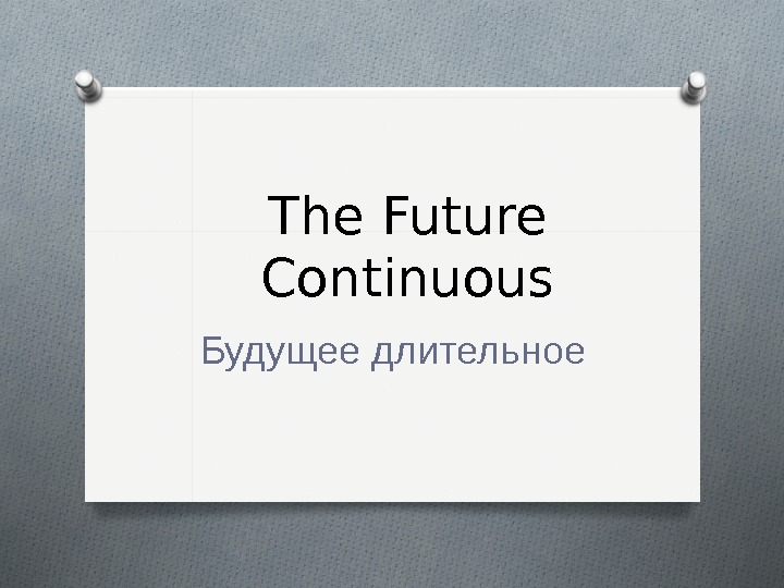The Future Continuous Будущее длительное The Future