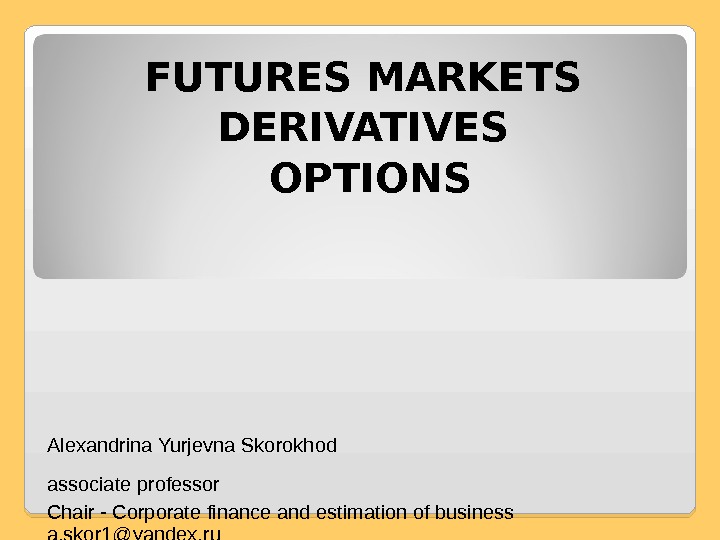 Alexandrina Yurjevna Skorokhod associate professor Chair — Corporate