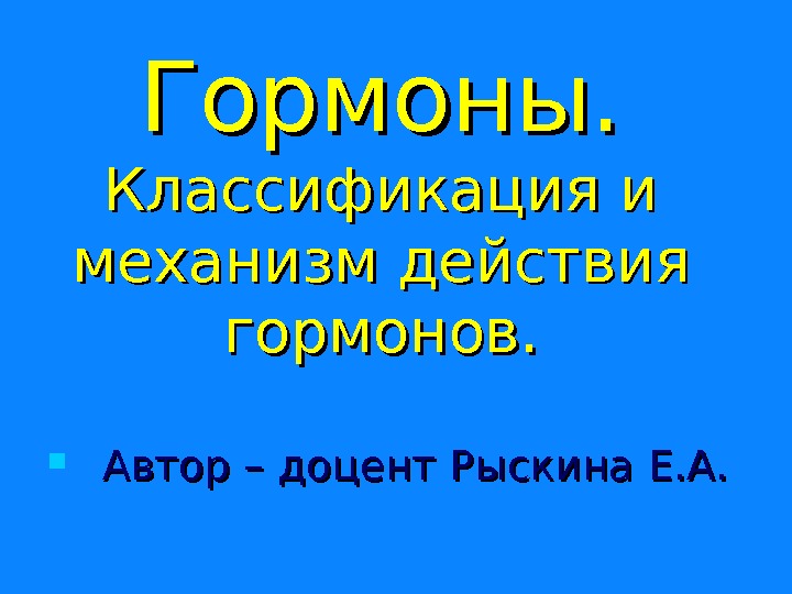 Гормоны. Классификация и механизм действия гормонов.