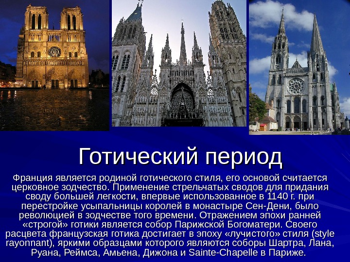 Готический период Франция является родиной готического стиля, его