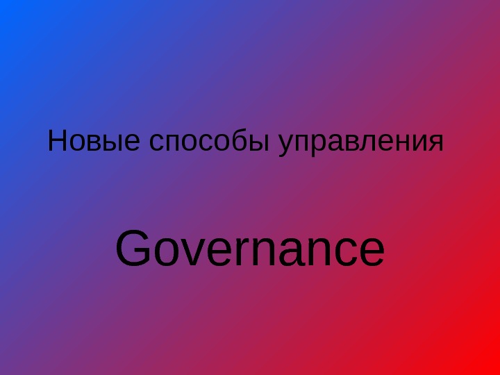 Новые способы управления Governance Представители •
