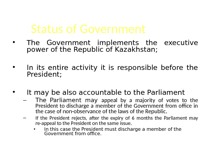 Status of Government • The Government implements