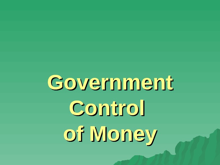 Government Control of Money 1. 1. Legal