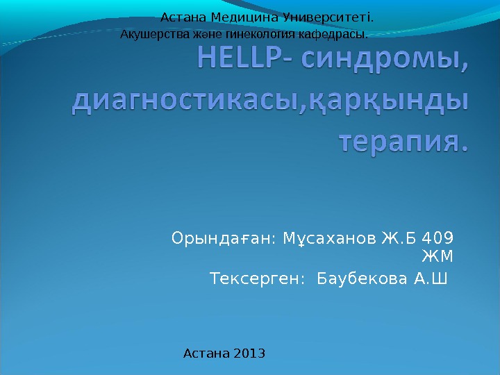 Та ырыбы: HELLP — синдромы. қ Диагностикасы, емі.