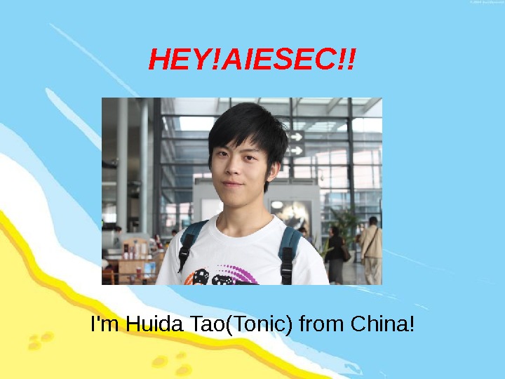 HEY!AIESEC!! I’m Huida Tao(Tonic) from China! About