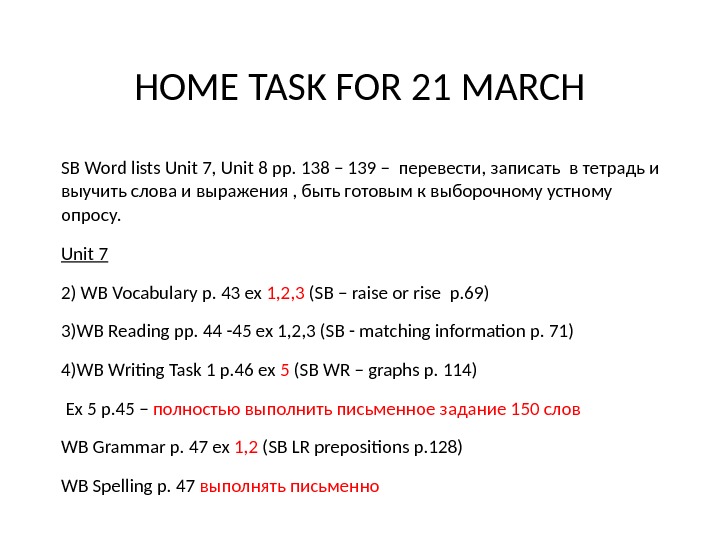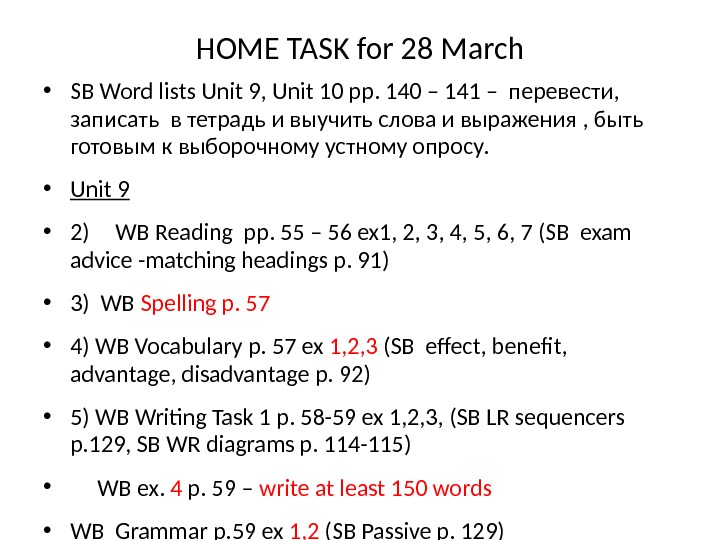 HOME TASK for 28 March • SB