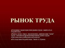 РЫНОК ТРУДА Основные характеристики рынка труда: занятость и