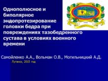 Однополюсное и биполярное эндопротезирование головки бедра при повреждениях