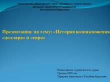 Презентация на тему: «История возникновения «доллара» и «евро»