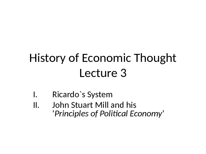 History of Economic Thought Lecture 3 I. Ricardo`s