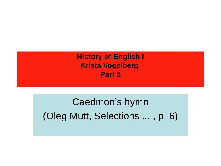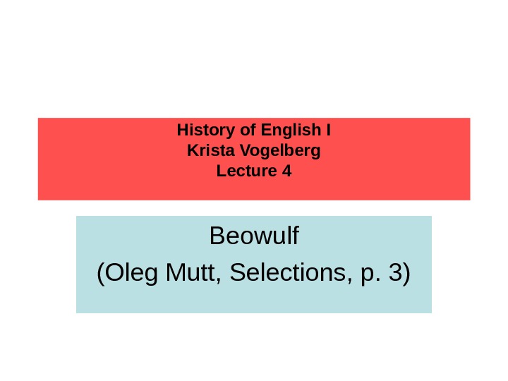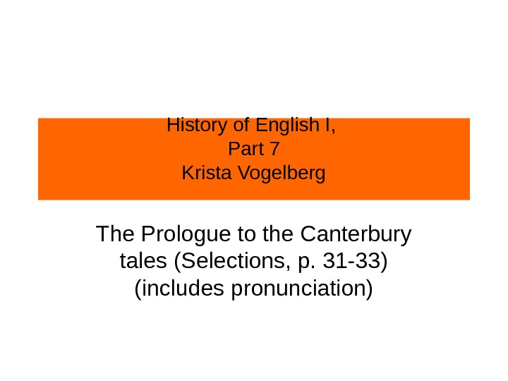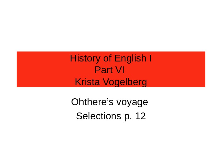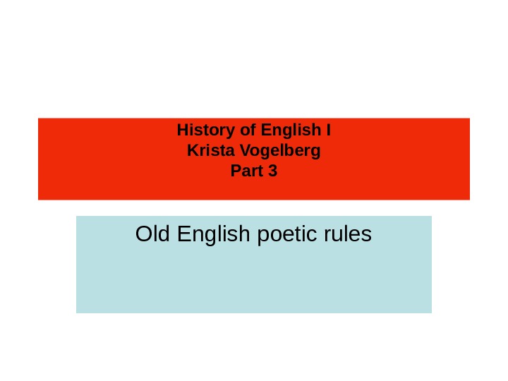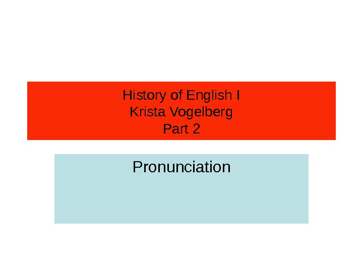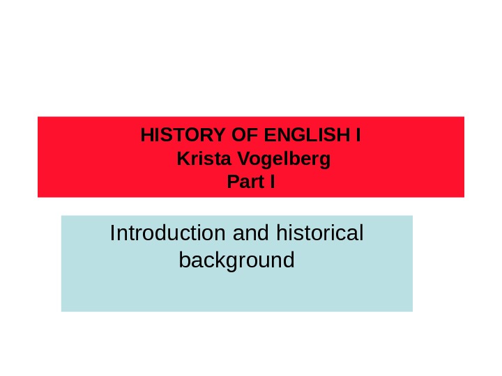 HISTORY OF ENGLISH I Krista Vogelberg Part