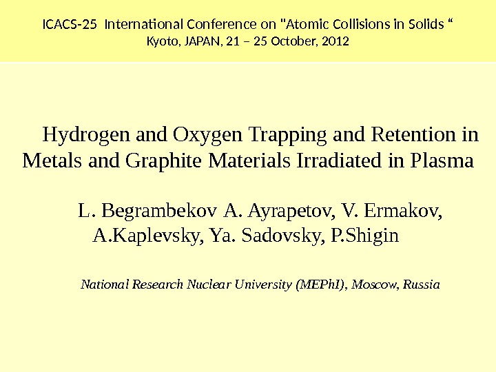 ICACS-25 International Conference on «Atomic Collisions in Solids