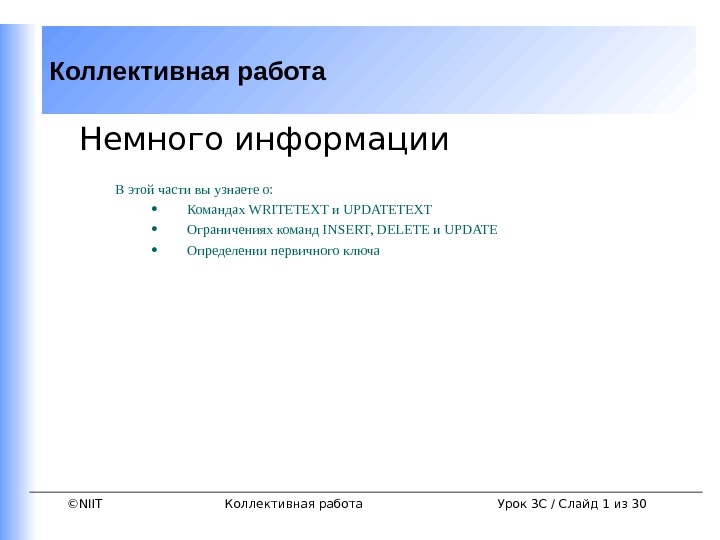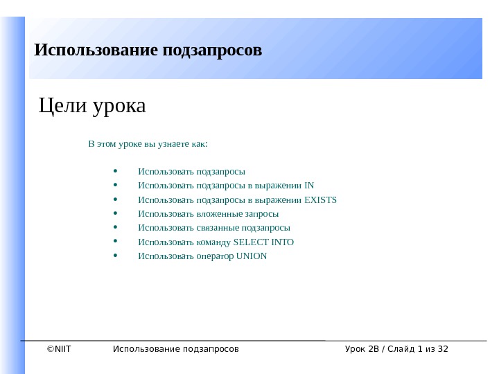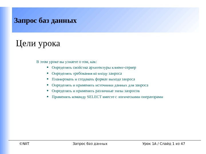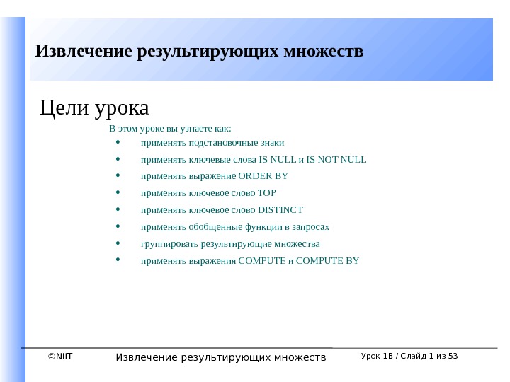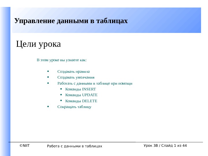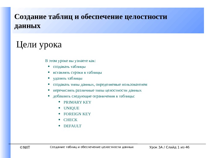©NIITСоздание таблиц и обеспечение целостности данных Создание таблиц