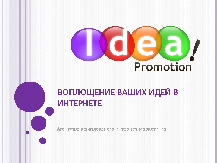 ВОПЛОЩЕНИЕ ВАШИХ ИДЕЙ В ИНТЕРНЕТЕ Агентство комплексного интернет-маркетинга