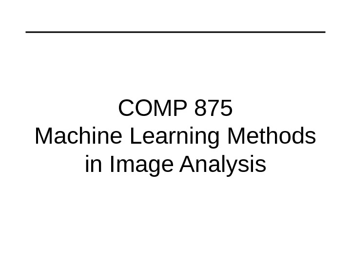 COMP 875 Machine Learning Methods in Image Analysis
