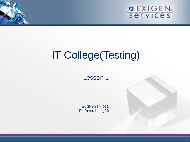 IT College(Testing) Lesson 1 Exigen Services, St.