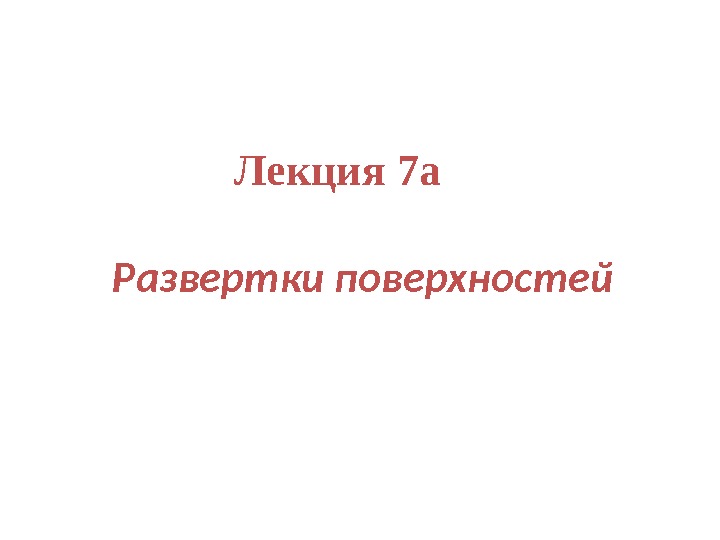 Лекция 7 а Развертки поверхностей