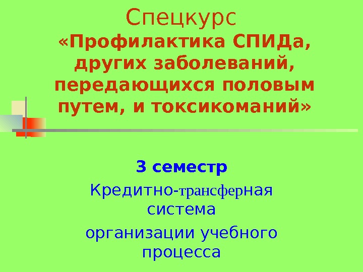 Спецкурс «Профилактика СПИДа, других заболеваний,