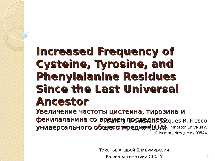 Increased Frequency of Cysteine, Tyrosine, and Phenylalanine Residues