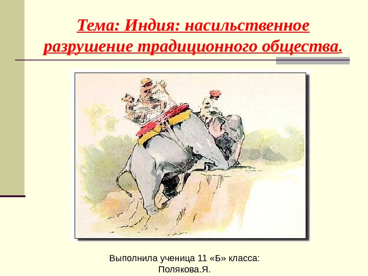 Тема: Индия: насильственное разрушение традиционного общества. Выполнила ученица