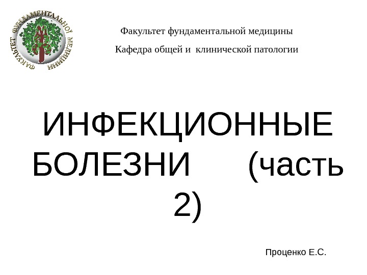 1 Факультет фундаментальной медицины Кафедра общей и клинической