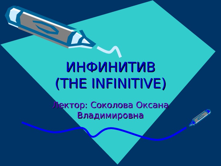ИНФИНИТИВ (( THE INFINITIVE) Лектор: Соколова Оксана Владимировна