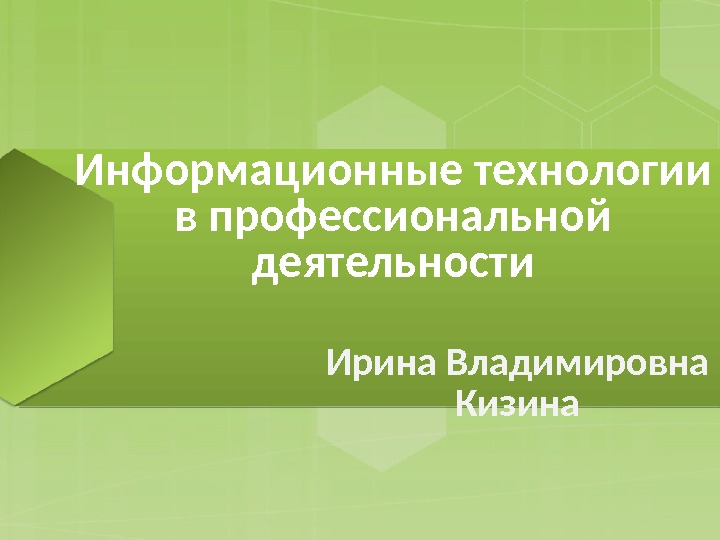 Информационные технологии в профессиональной деятельности Ирина Владимировна Кизина