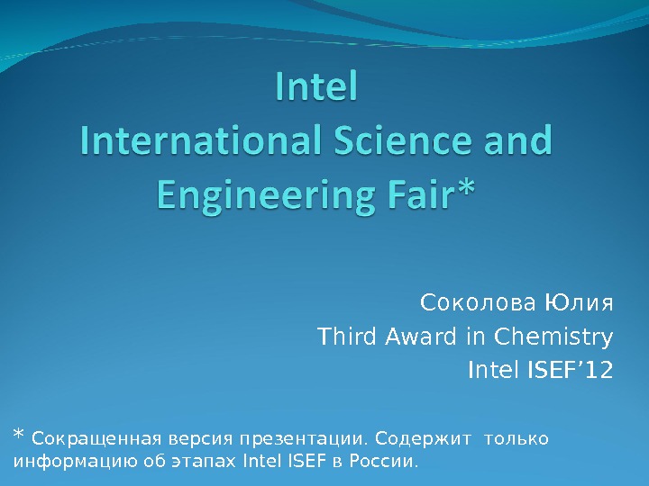 Соколова Юлия Third Award in Chemistry Intel