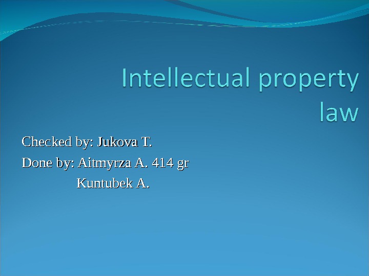 Checked by: Jukova T. Done by: Aitmyrza A.