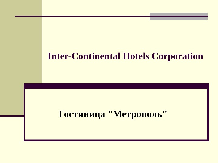 Inter-Continental Hotels Corporation Гостиница «Метрополь» Корпорация